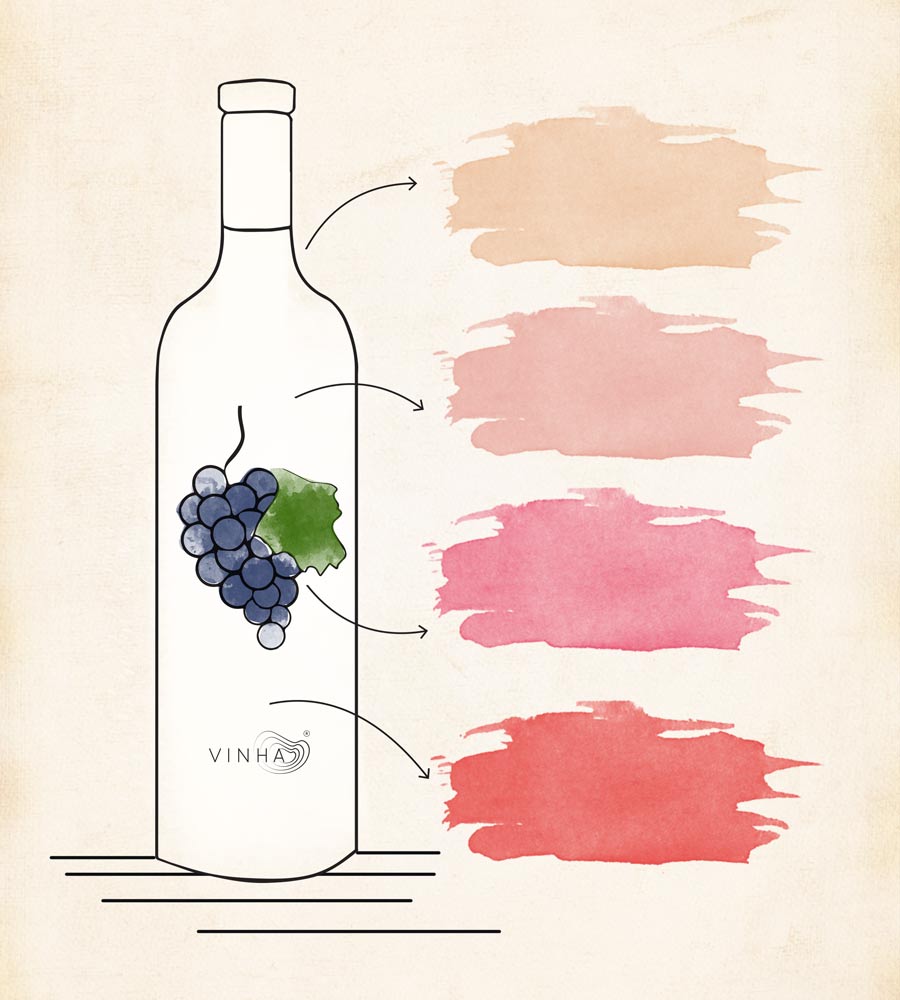 O vinho rosé é conhecido pela sua bela cor rosada que, dependendo das castas e técnicas de vinificação utilizadas, varia desde a cor de casca de cebola a salmão, e de rosa pálido a groselha. São vinhos com características de brancos (delicados) mas que recebem alguma da personalidade dos vinhos tintos (cor, taninos), o que modifica bastante a sua estrutura gustativa.